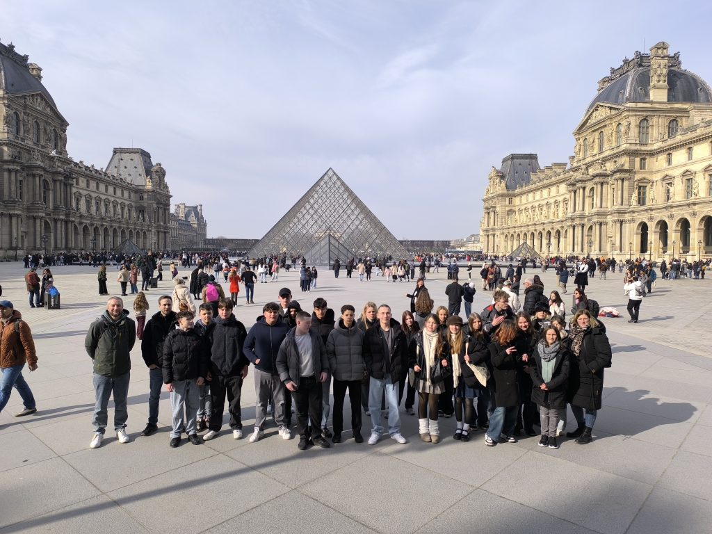 Als nächste Station steuerte die Gruppe Notre Dame an, die nach dem verheerenden Brand gerade erst neu wiedereröffnet wurde. Der Anblick von Notre Dame und die Atmosphäre im Inneren waren einfach überwältigend. Auch die Seine beeindruckte mit ihrer Größe, die von der schönen Architektur rund um den Fluss noch unterstrichen wurde. Nach dem Besuch von Notre Dame hatten die Schülerinnen und Schüler die Möglichkeit auf eigene Faust das Lateinischen Quartier zu erkunden. Anschließend ging es zum Louvre, wo ein Gruppenfoto vor der berühmten Pyramide gemacht wurde, Souvenirs gekauft und mit einheimischen Parisern geplaudert wurde.