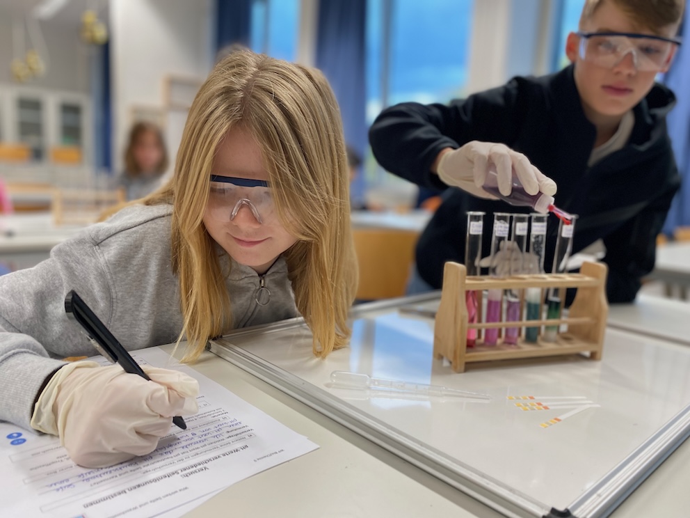 Das Fach Naturwissenschaften wird in der 5. und 6. Klasse an der Selma-Lagerlöf-Sekundarschule unterrichtet. Es bietet den Schülern und Schülerinnen erste Einblicke in naturwissenschaftliche Arbeitsweisen und weckt das Interesse an Fachinhalten. Durch den Einsatz interaktiver und schülerzentrierter Lehrmethoden, wie Experimente, Projekte und Gruppenarbeit, werden die Schüler aktiv in den Lernprozess eingebunden. Diese Methoden zielen darauf ab, die Neugier der Schüler zu wecken und ein tieferes Verständnis für naturwissenschaftliche Phänomene und Prozesse zu entwickeln. Durch die Kombination aus theoretischem Wissen und praktischer Anwendung wird eine Lernumgebung geschaffen, die es den Schülern ermöglicht, naturwissenschaftliche Inhalte nicht nur zu erlernen, sondern diese zu verstehen und in verschiedenen Kontexten anzuwenden. Die sorgfältige Planung und Durchführung des naturwissenschaftlichen Unterrichts zeigt das Engagement der Selma-Lagerlöf-Sekundarschule, eine umfassende und zukunftsorientierte Bildung im naturwissenschaftlichen Bereich zu bieten. Nach der Jahrgangsstufe 6 erfolgt ein vertiefender, fachspezifischer Unterricht in den Fächern Biologie, Chemie und Physik sowie ein zusätzliches Lehrangebot im Rahmen des Wahlpflichtfaches Naturwissenschaften (WP NW).